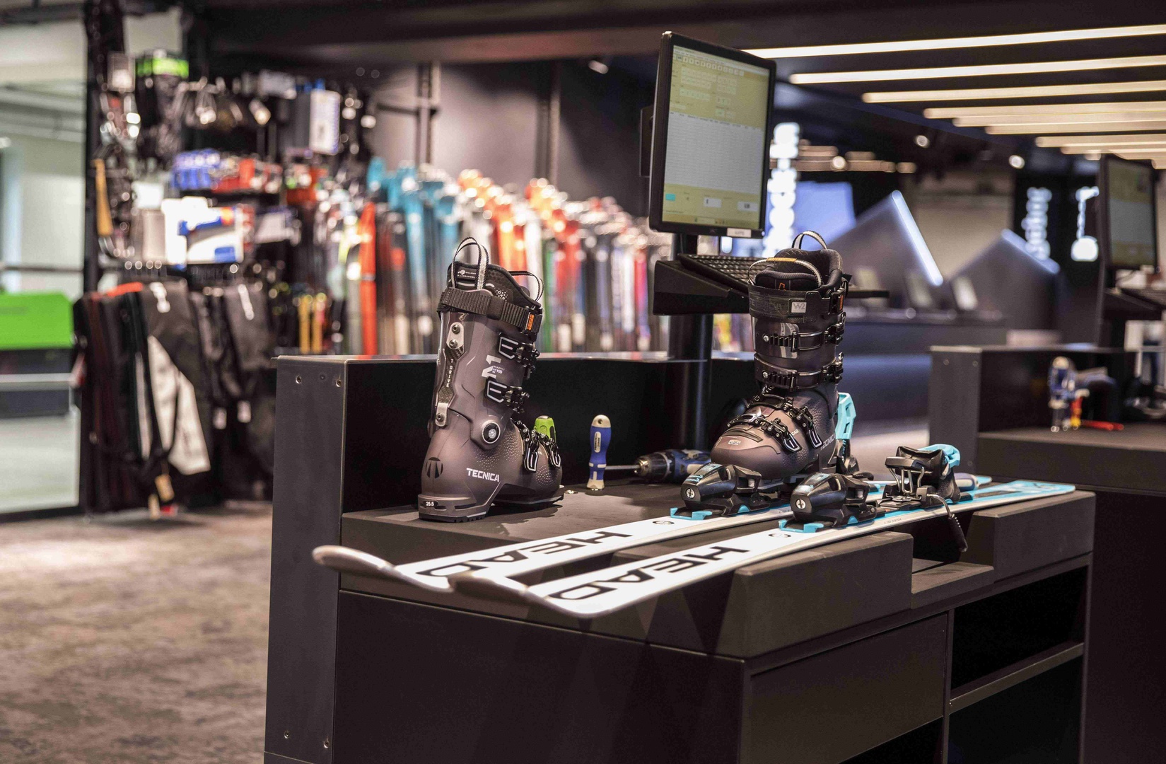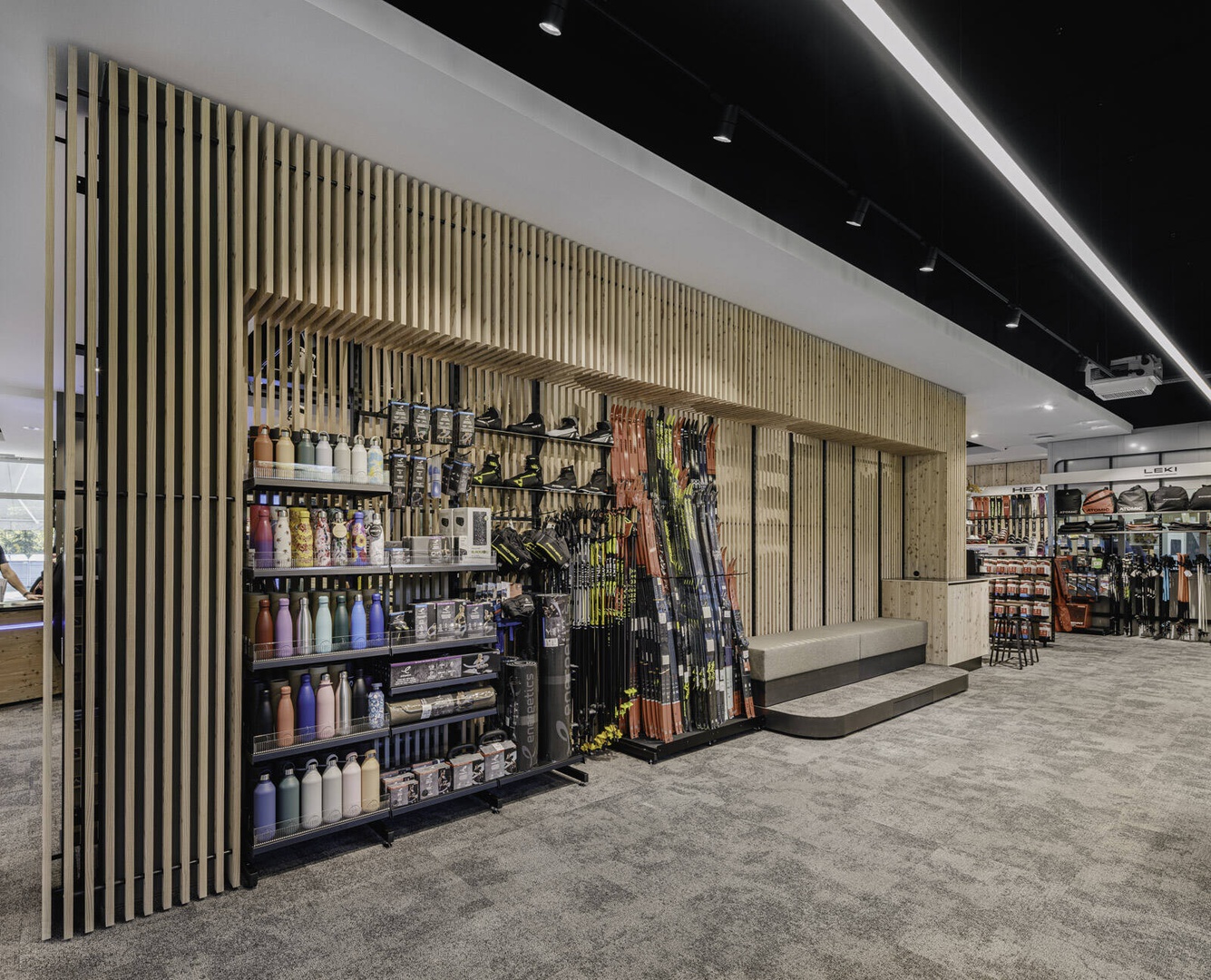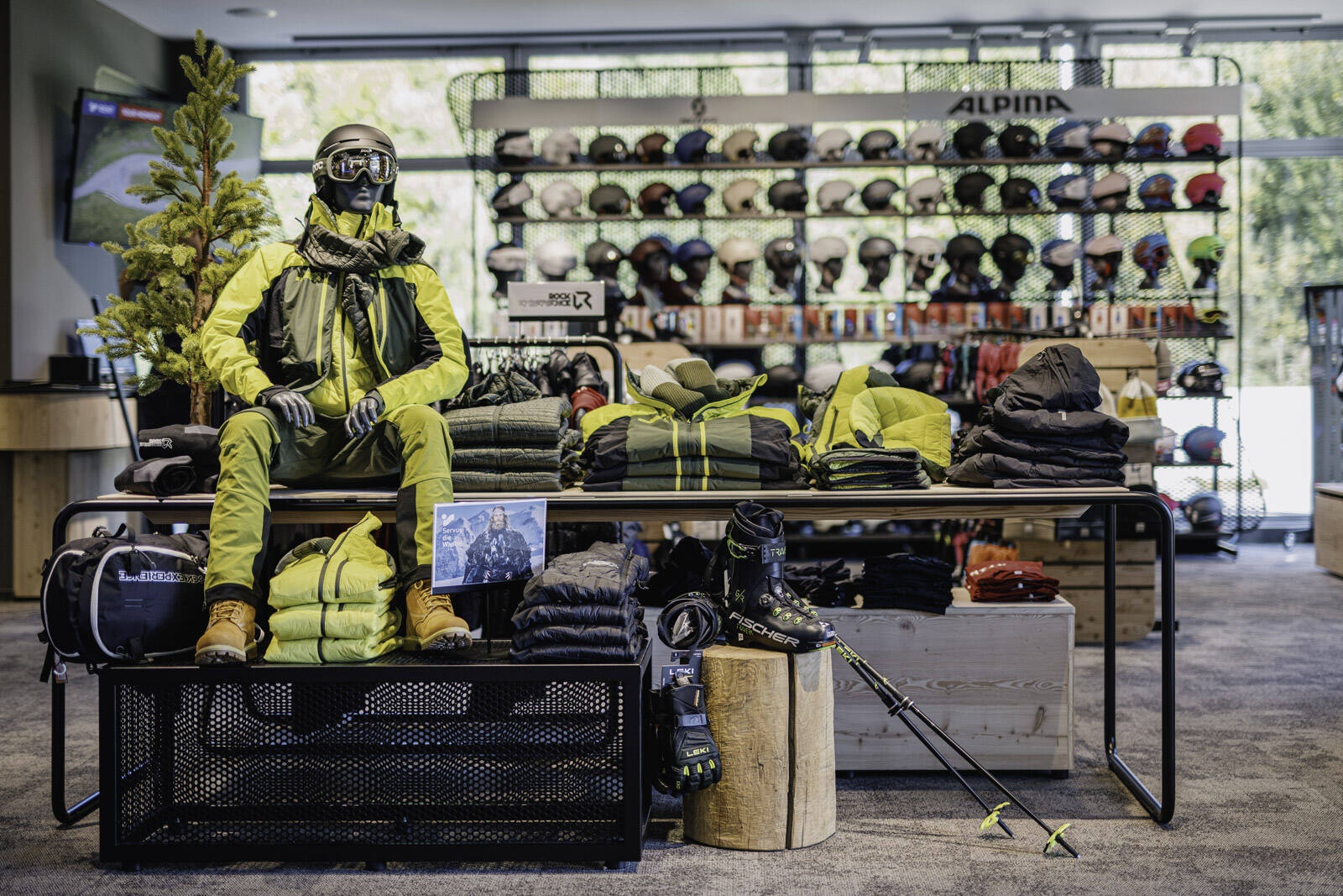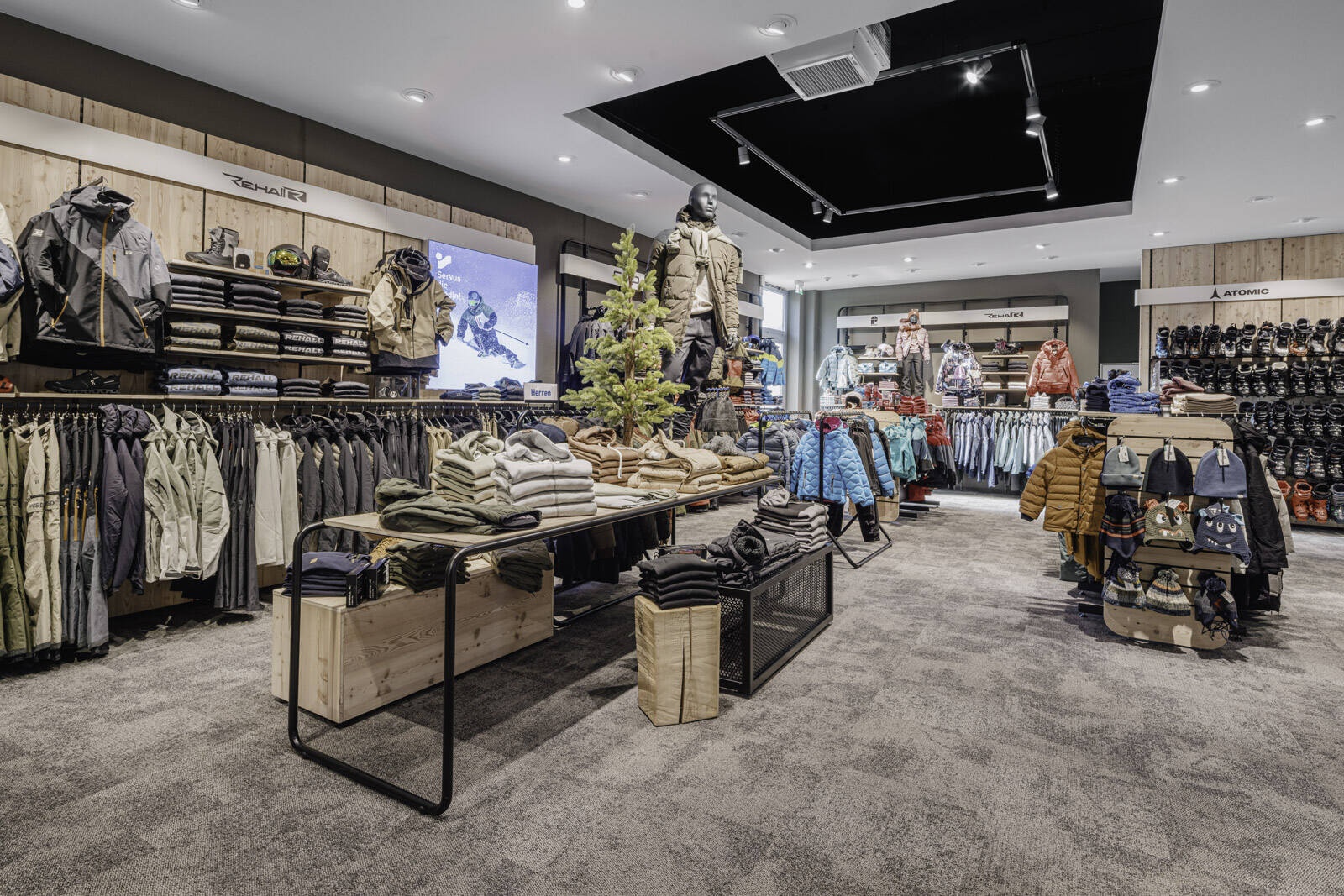 Viele Erlebnisse wurden eingearbeitet: vom SKISIMULATOR, dem BAUMHAUS für die Kids zum supercoolen RUNNING LAB sowie der Service BAR bis hin zu offenen Werkstattbereichen.