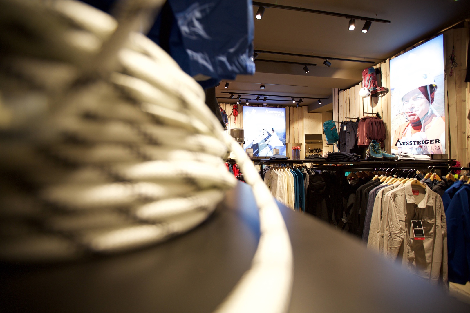 Am Ende des Tages erarbeiteten wir einen kompletten Markenrelaunch (Logo...) und einen neuen Shop in Berlin - Prenzlauer Berg, der völlig und ganzheitlich auf das Thema Outdoor und auf den Markenkern "AUSSTEIGER - FÜHL DAS LEBEN" abgestimmt ist!