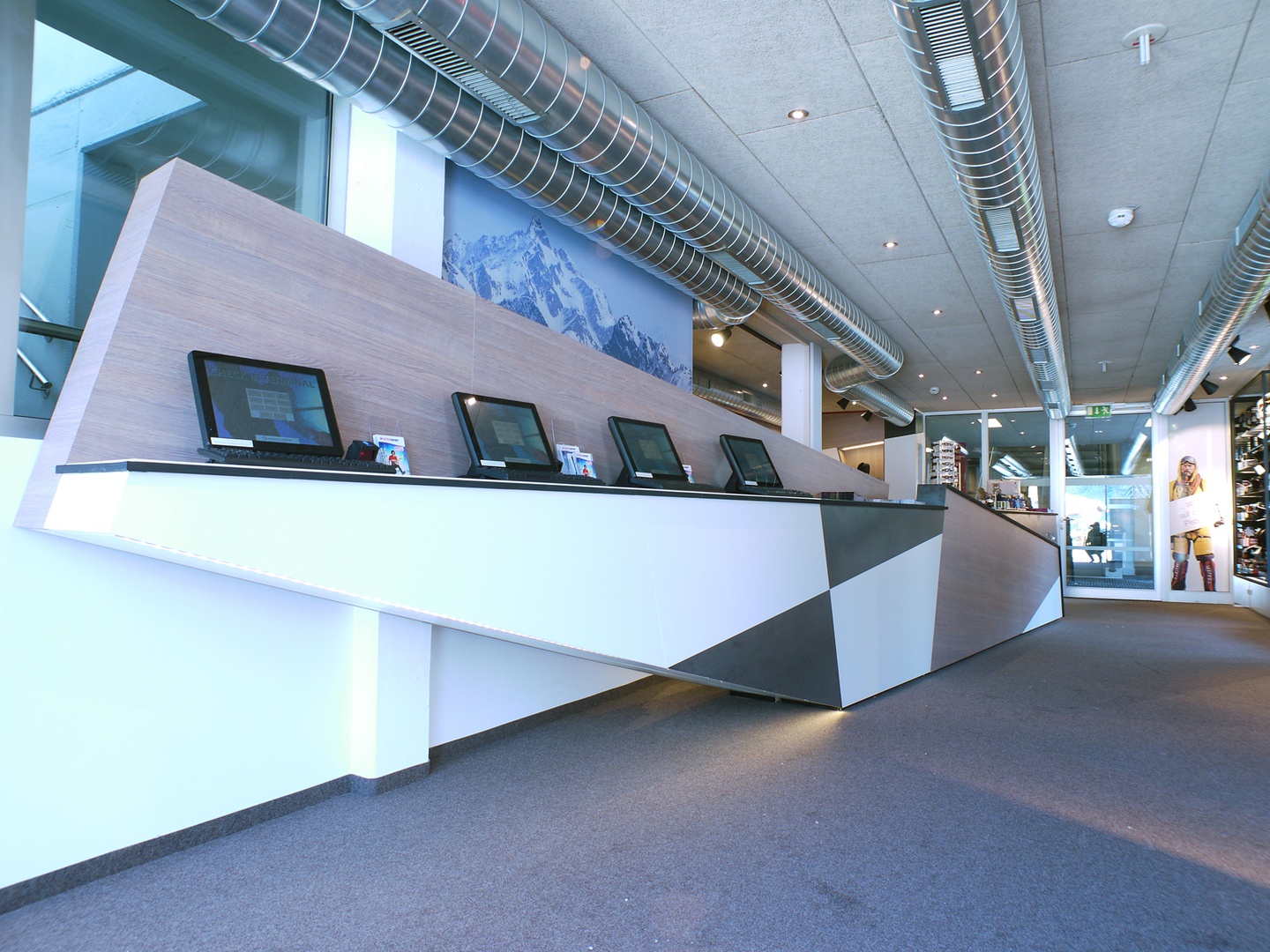 Ein INTERSPORT-Shop in einem der letzten großen neugebauten Einkaufszentren der preisgekrönten ATP in Gerasdorf, das komplett in Holzbauweise realisiert wurde und unser Shopkonzept perfekt aufnimmt.