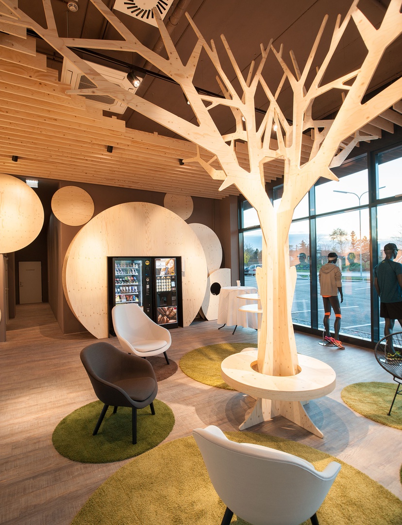 Einen Baukörper, der für die Marke spricht, Aufmerksamkeit erzeugt und sich trotzdem ins Umfeld integriert, gab es zu entwickeln.