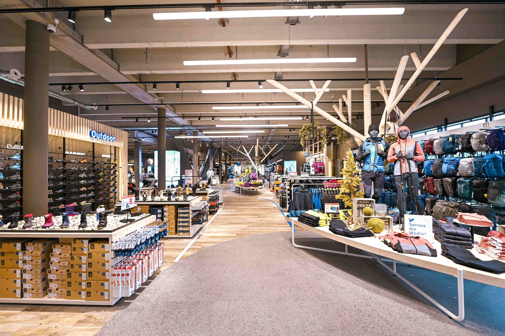 Viele Erlebnisse wurden eingearbeitet: vom SKISIMULATOR, dem BAUMHAUS für die Kids zum supercoolen RUNNING LAB sowie der Service BAR bis hin zu offenen Werkstattbereichen.