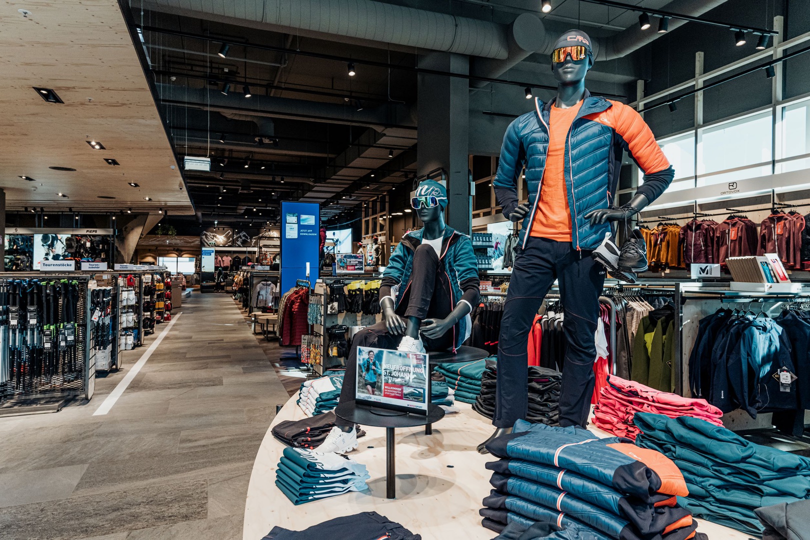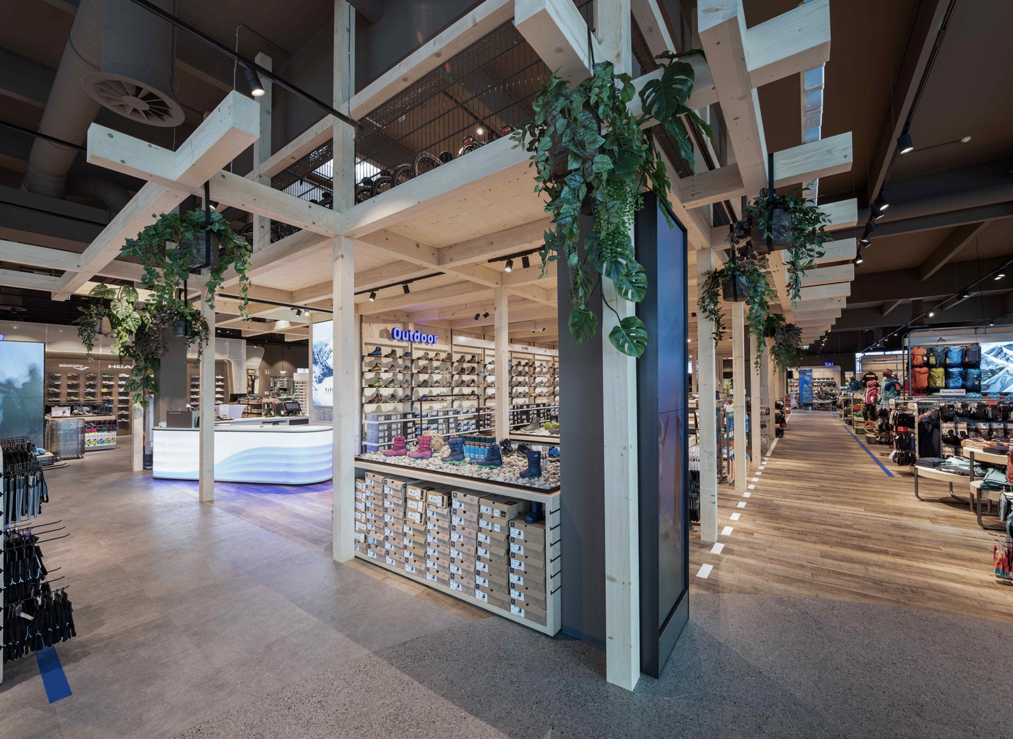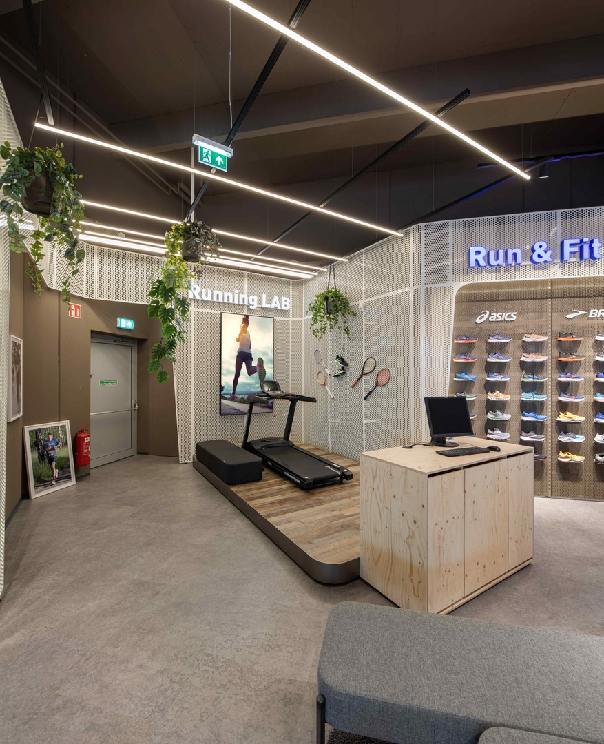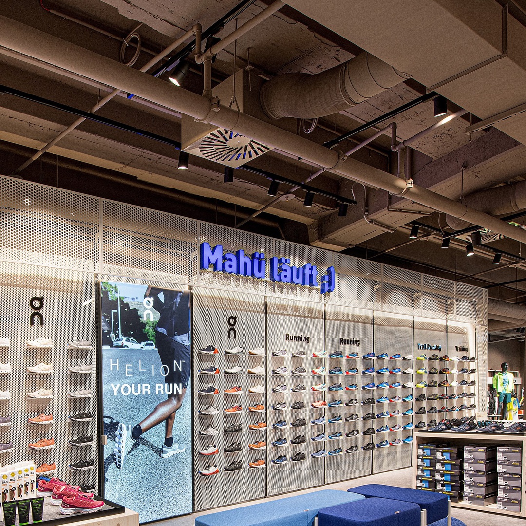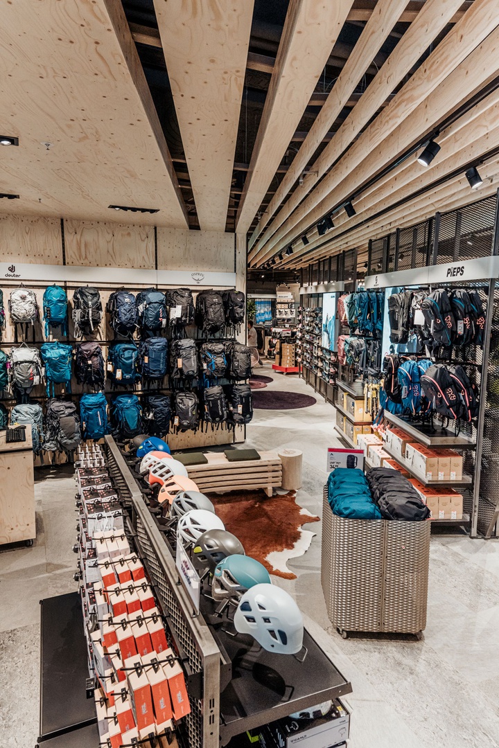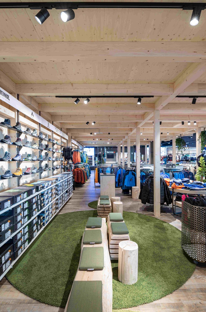 Frische Retailarchitektur mit dem Fokus auf RUNNING, TRAINING, SPORTSSTYLE und natürlich auf OUTDOOR sowie die Saisonen mit SKI & BIKE. Die WERKSTATT vor Ort, RUNNING ANALYSE und BERGSCHUHTESTER gehören heute selbstverständlich zum KUNDENSERVICE dazu. Ein BOULDERBLOCK komplettiert das RUNDUMSERVICE samt coolem ERLEBNIS.