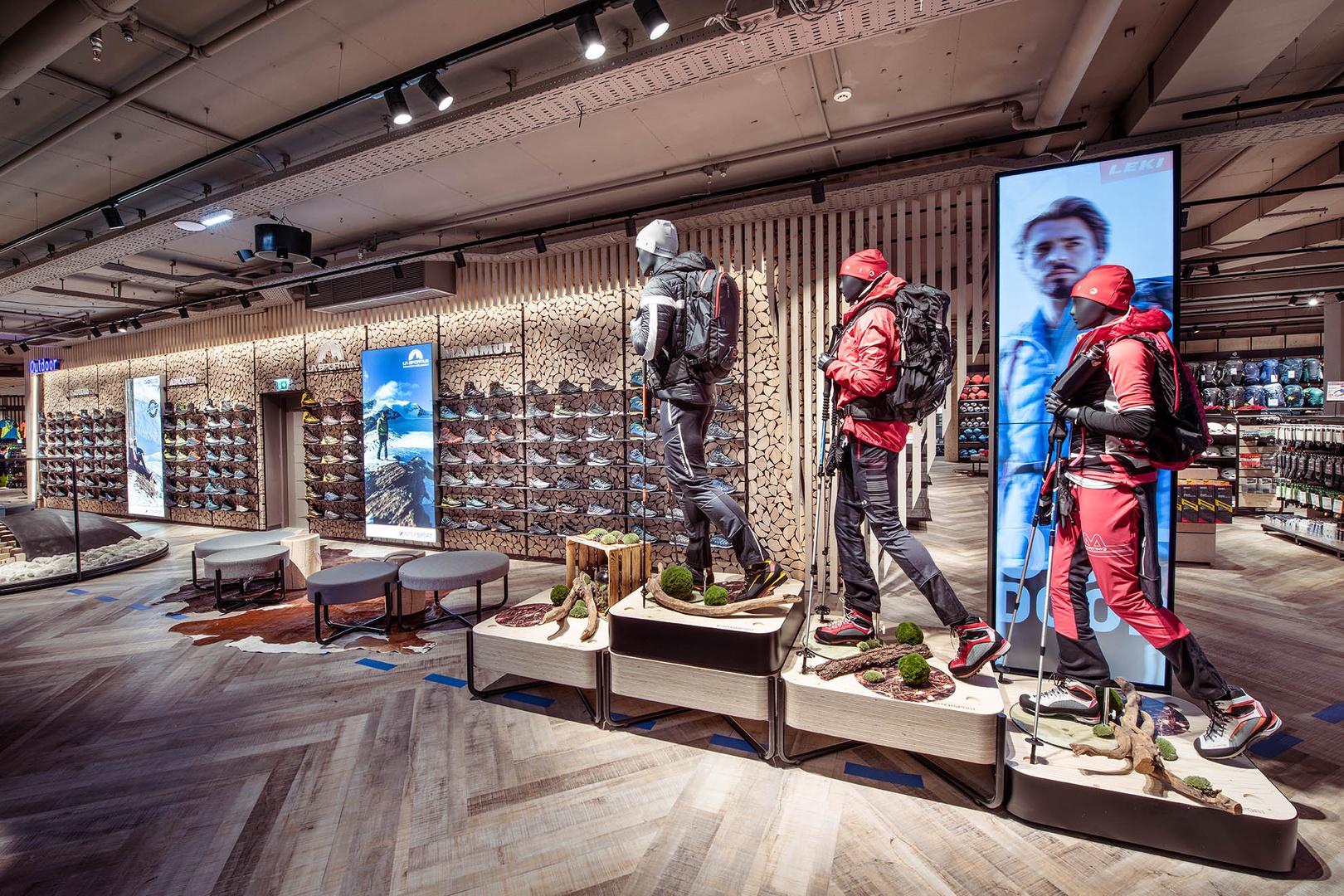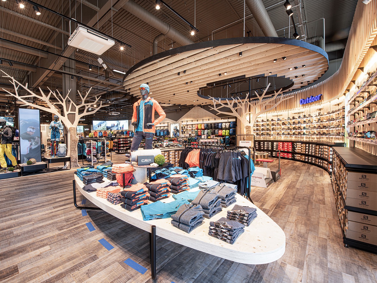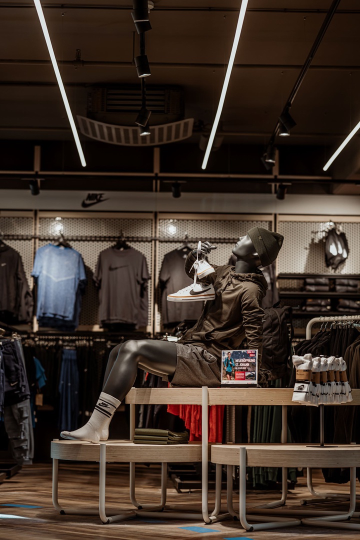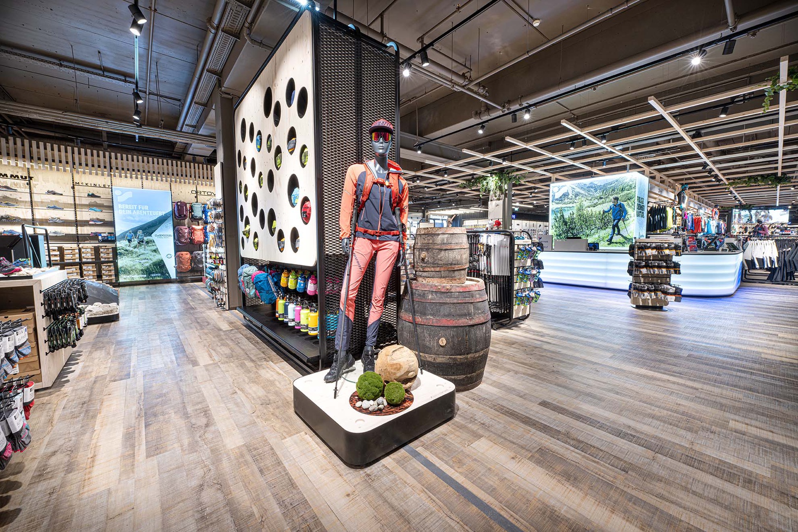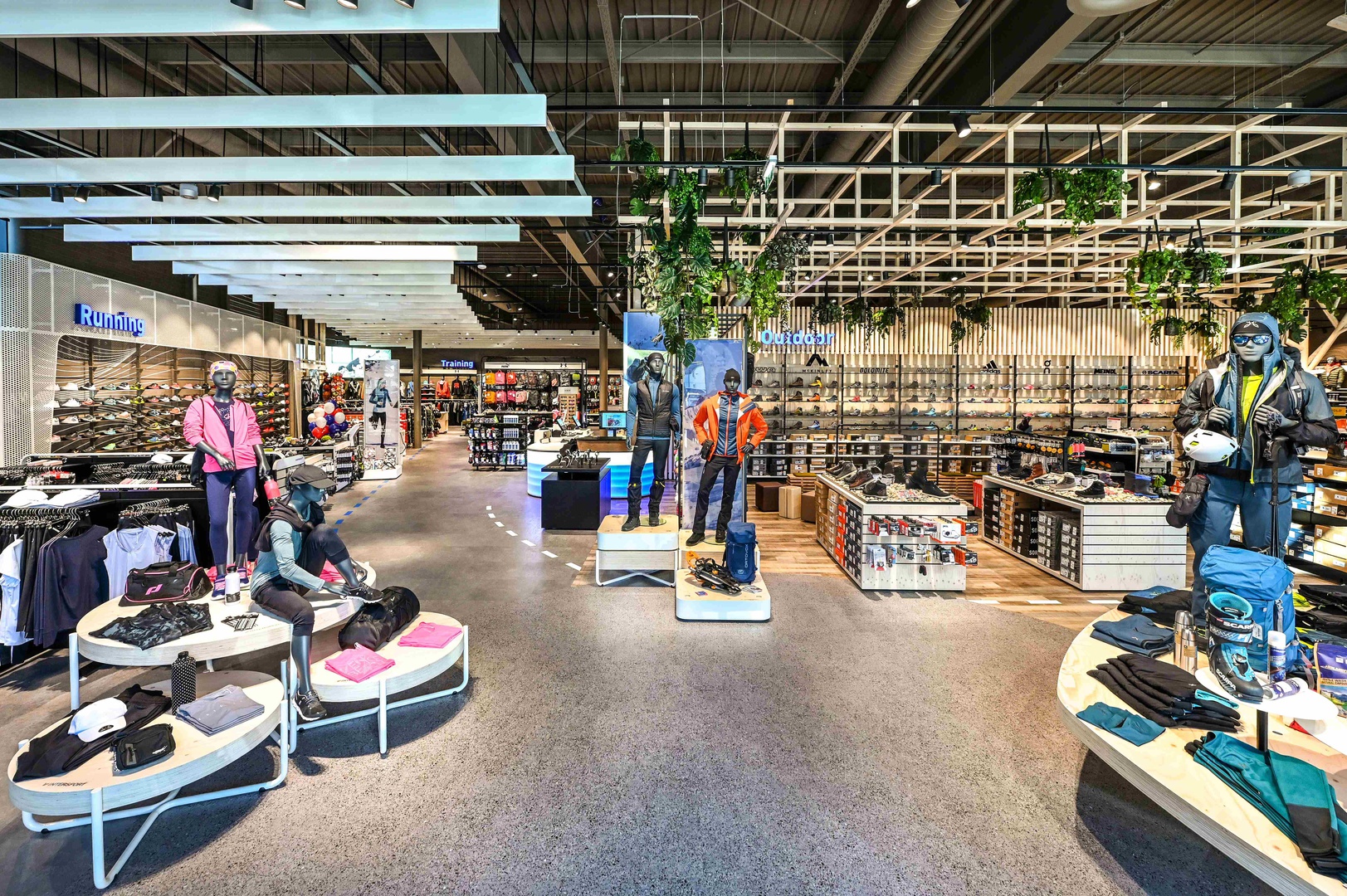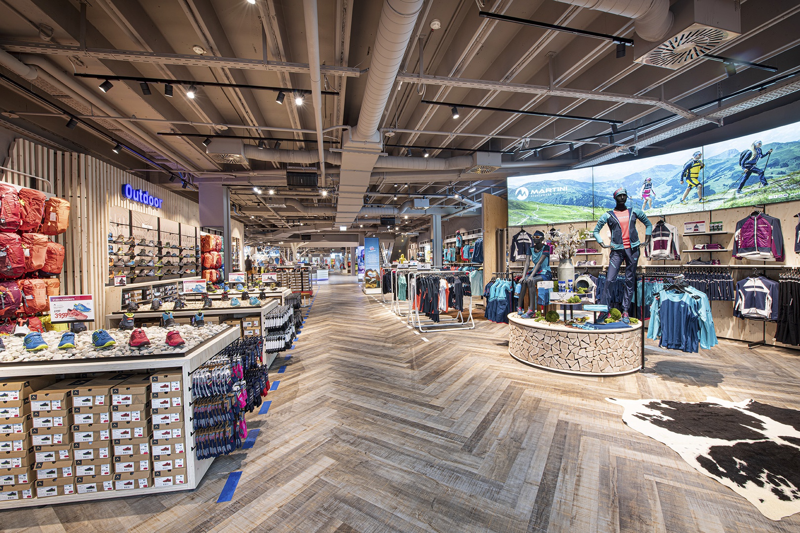 Frische Retailarchitektur mit dem Fokus auf RUNNING, TRAINING, SPORTSSTYLE und natürlich auf OUTDOOR sowie die Saisonen mit SKI & BIKE. Die WERKSTATT vor Ort, RUNNING ANALYSE und BERGSCHUHTESTER gehören heute selbstverständlich zum KUNDENSERVICE dazu. Ein BOULDERBLOCK komplettiert das RUNDUMSERVICE samt coolem ERLEBNIS.