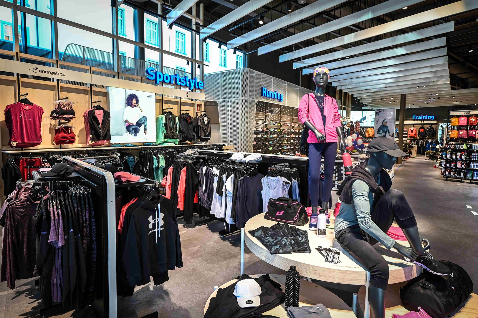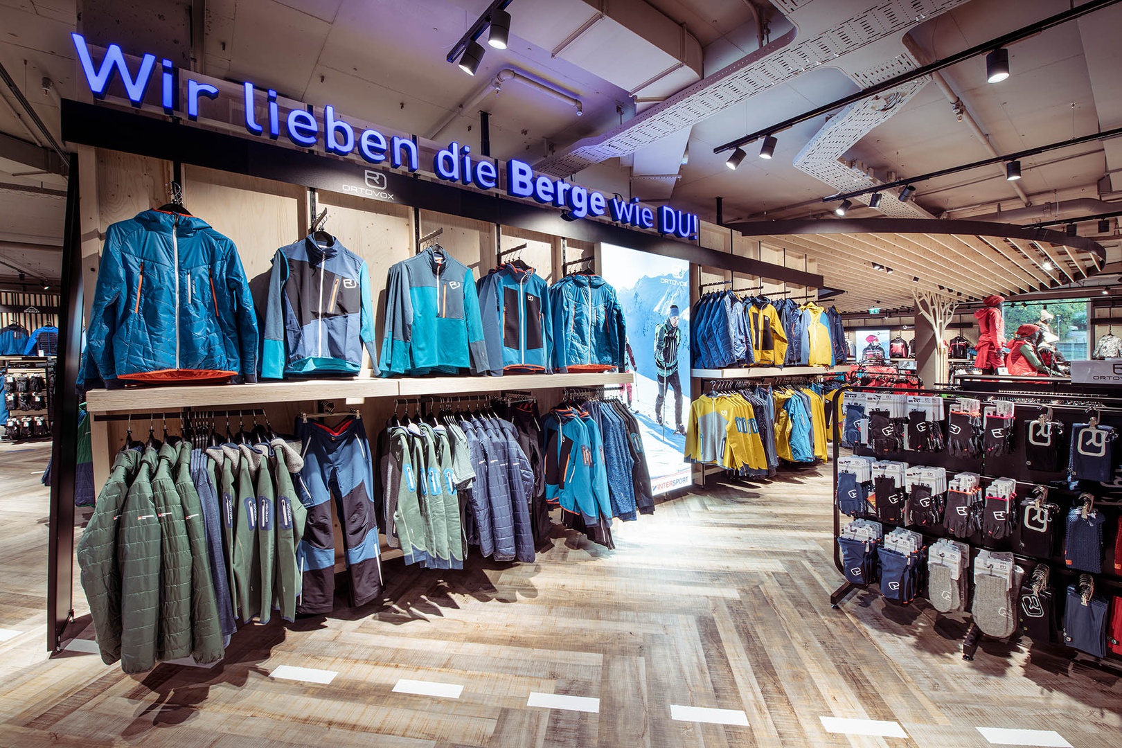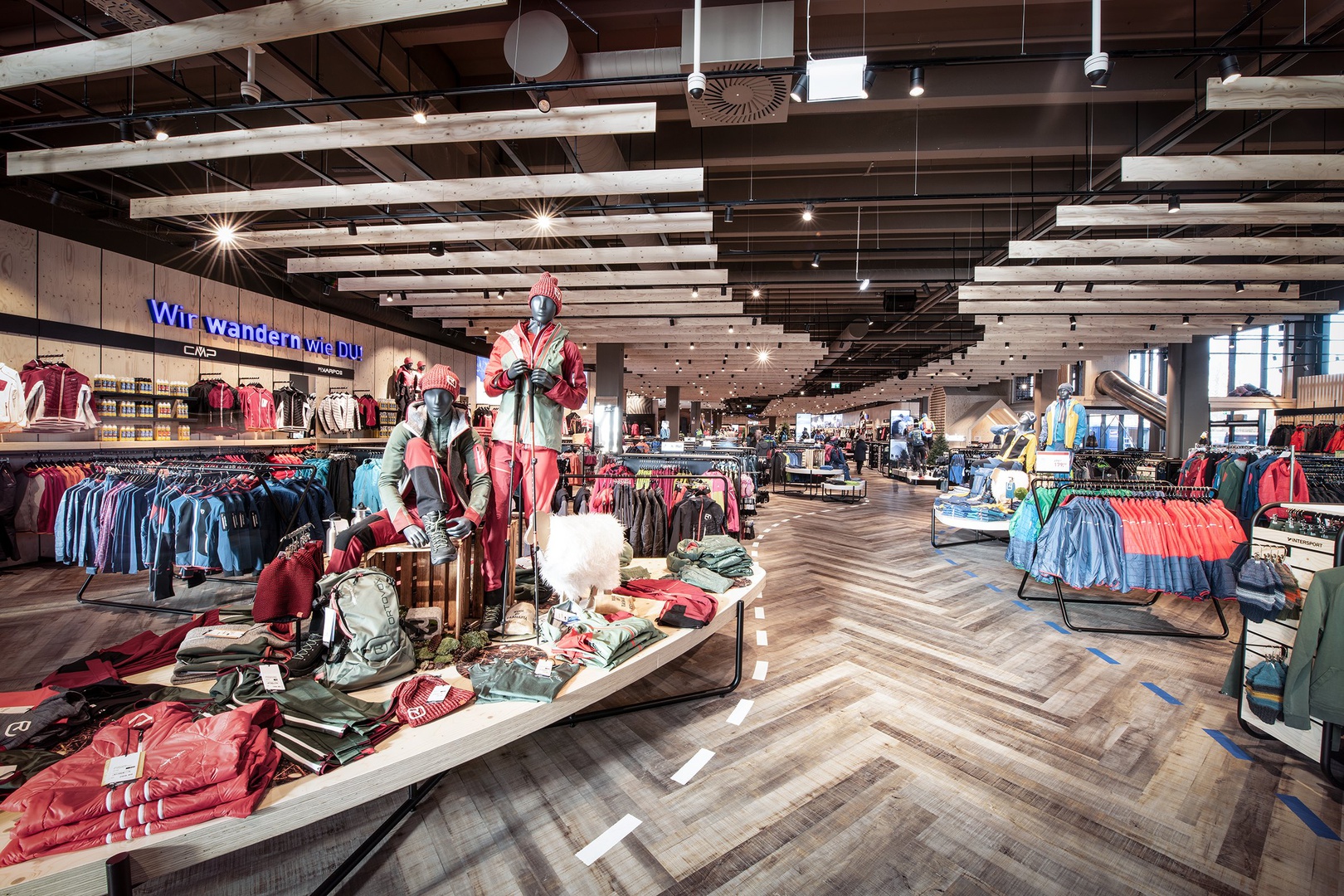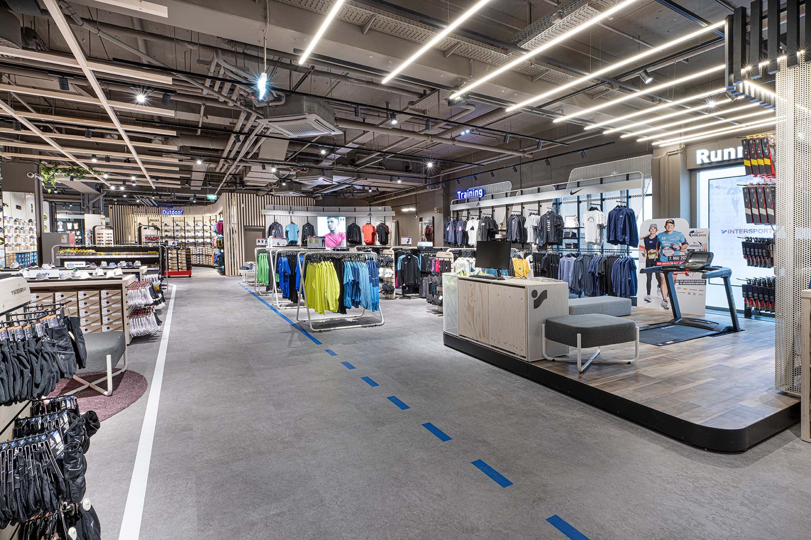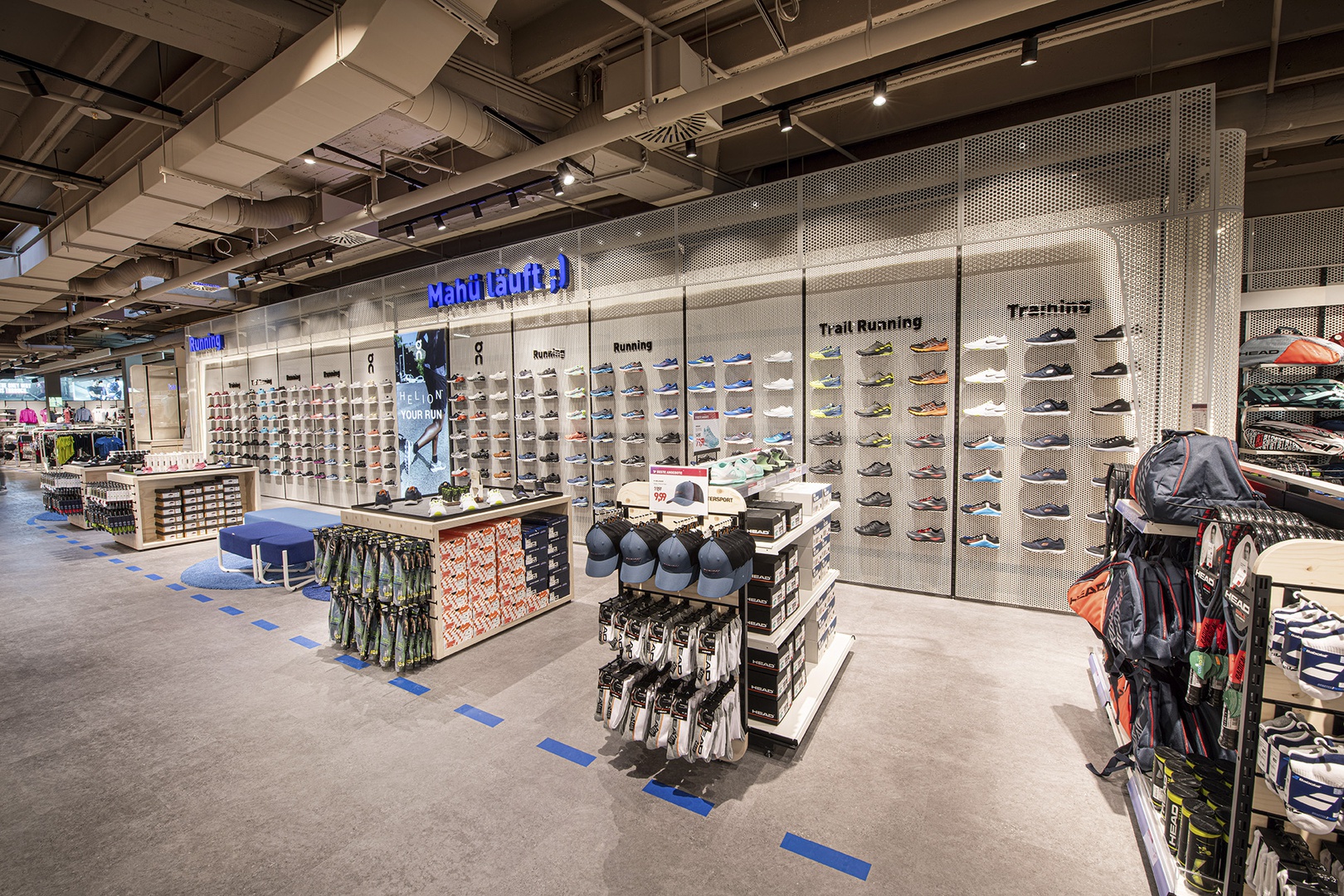 Frische Retailarchitektur mit dem Fokus auf RUNNING, TRAINING, SPORTSSTYLE und natürlich auf OUTDOOR sowie die Saisonen mit SKI & BIKE. Die WERKSTATT vor Ort, RUNNING ANALYSE und BERGSCHUHTESTER gehören heute selbstverständlich zum KUNDENSERVICE dazu. Ein BOULDERBLOCK komplettiert das RUNDUMSERVICE samt coolem ERLEBNIS.