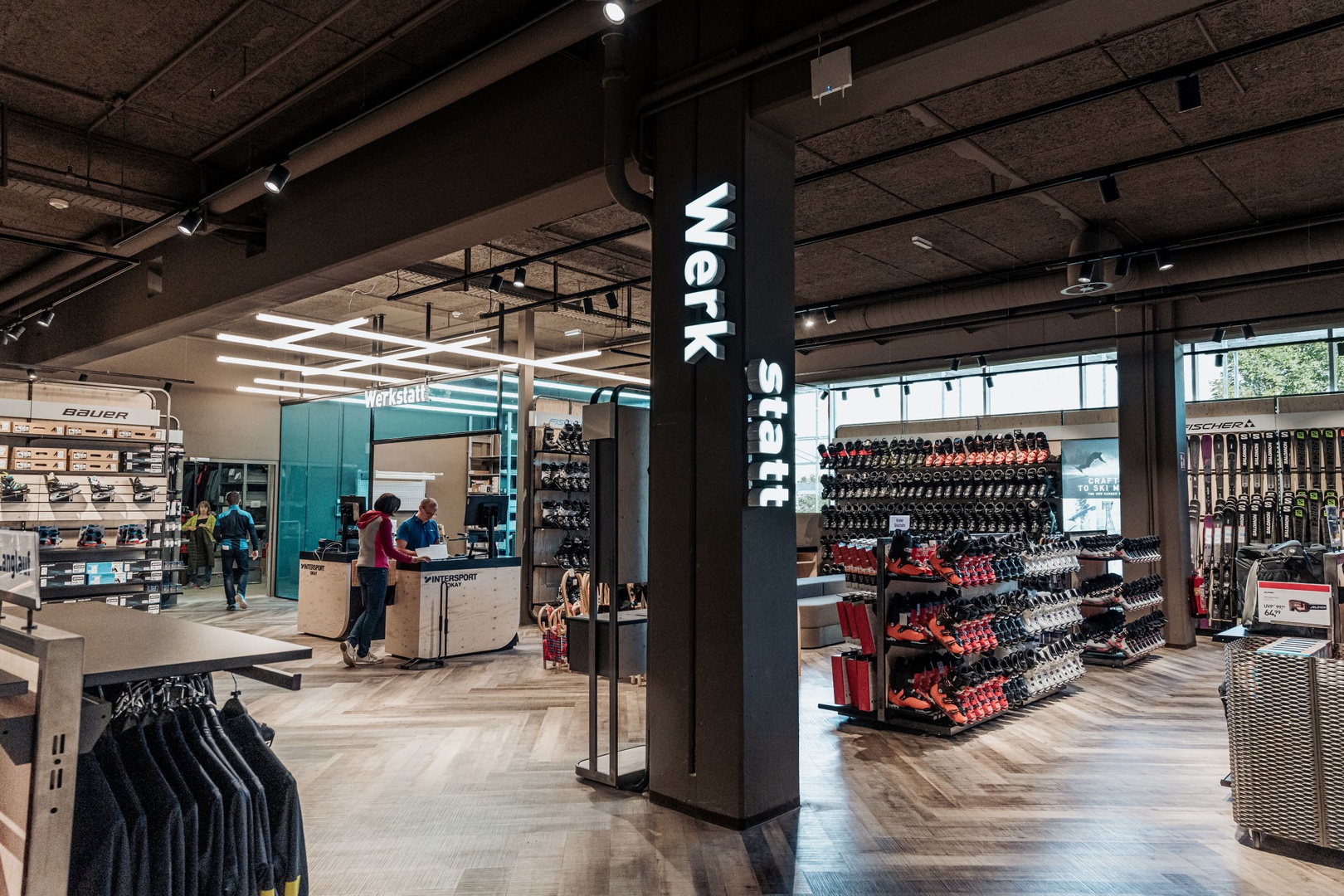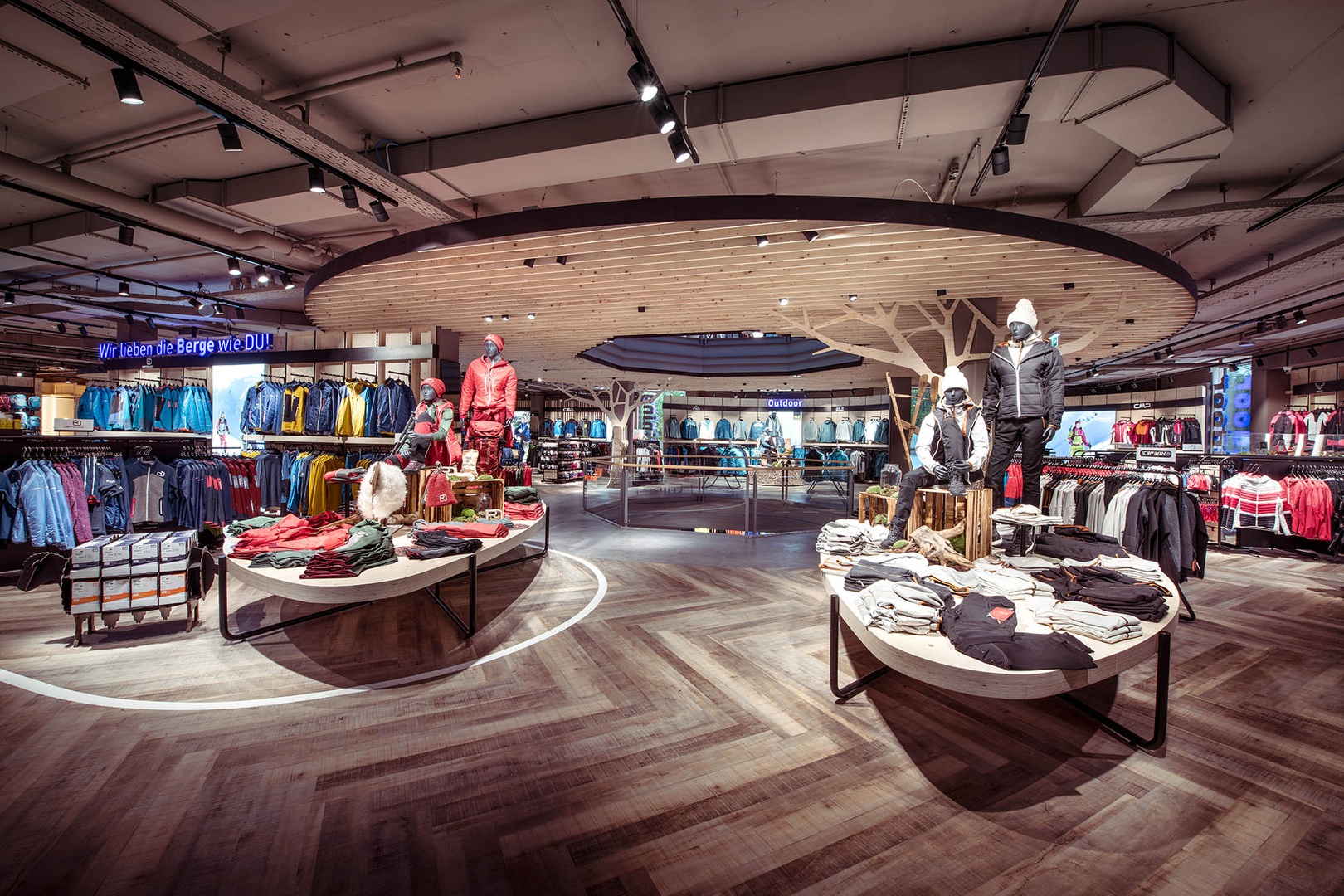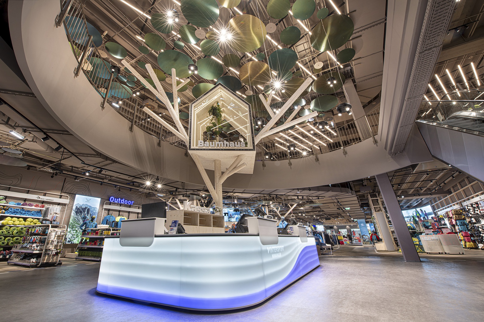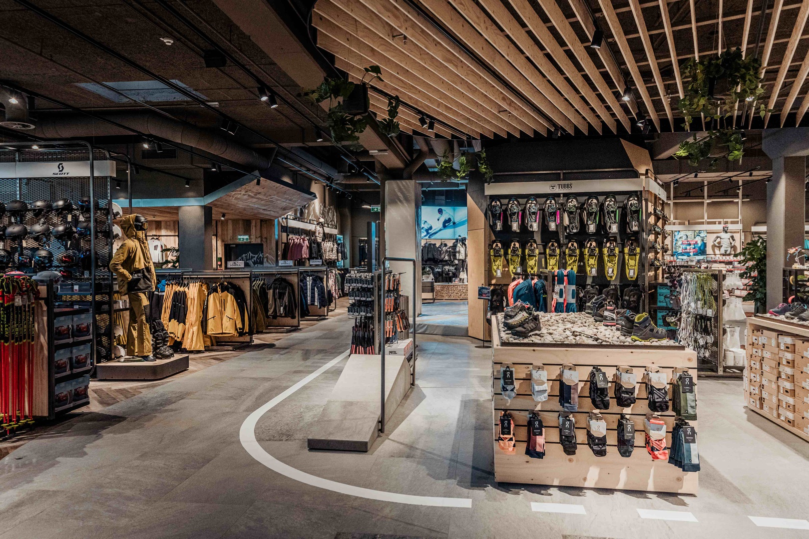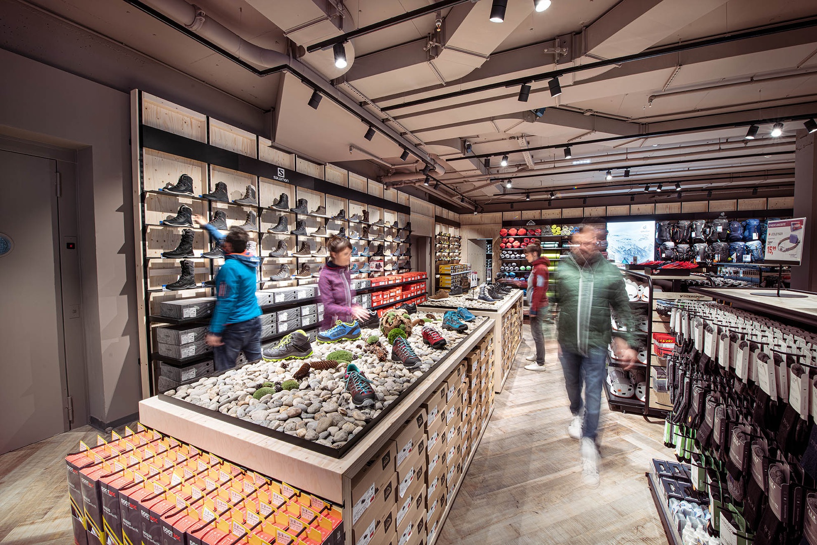 Frische Retailarchitektur mit dem Fokus auf RUNNING, TRAINING, SPORTSSTYLE und natürlich auf OUTDOOR sowie die Saisonen mit SKI & BIKE. Die WERKSTATT vor Ort, RUNNING ANALYSE und BERGSCHUHTESTER gehören heute selbstverständlich zum KUNDENSERVICE dazu. Ein BOULDERBLOCK komplettiert das RUNDUMSERVICE samt coolem ERLEBNIS.
