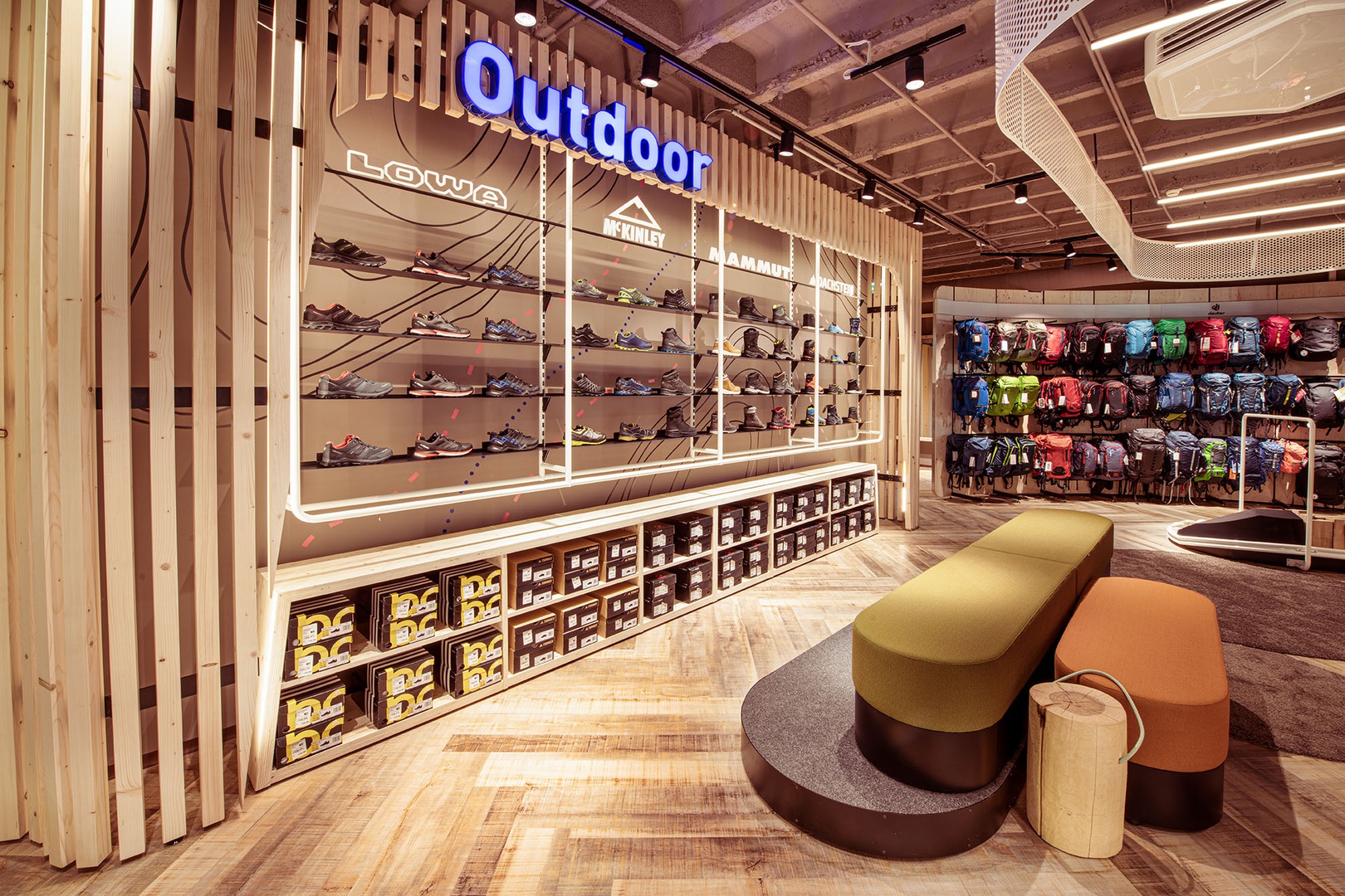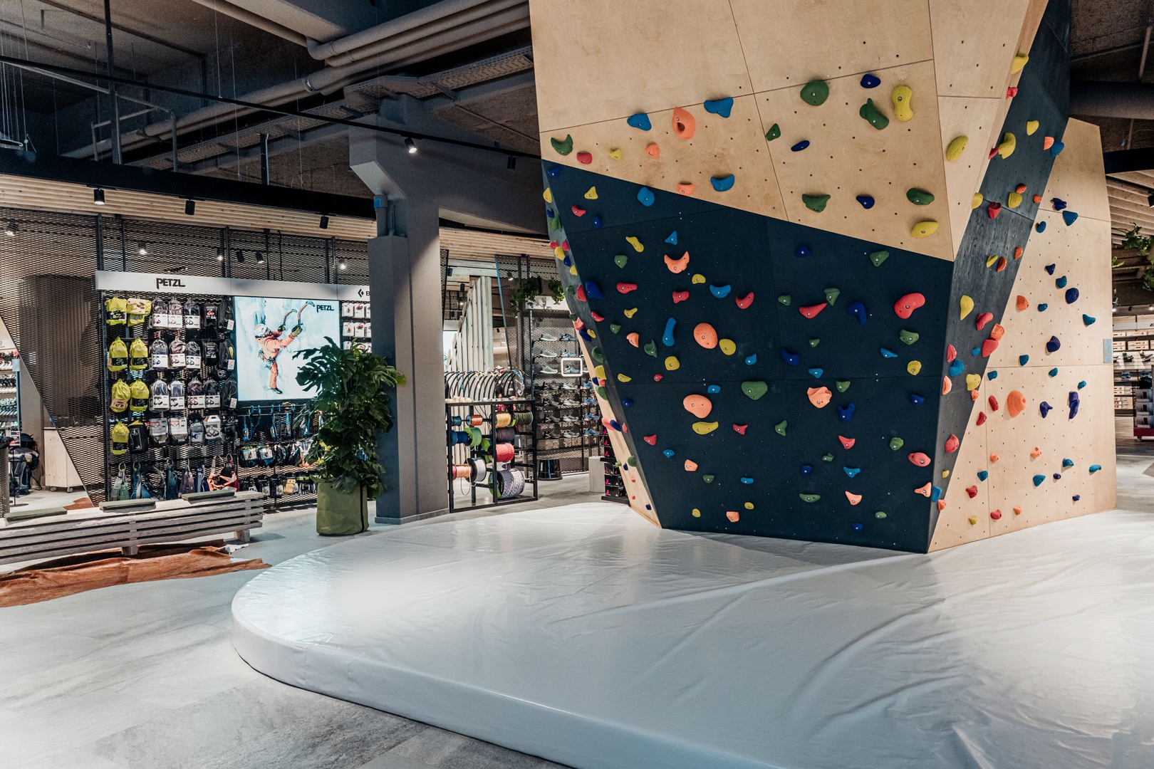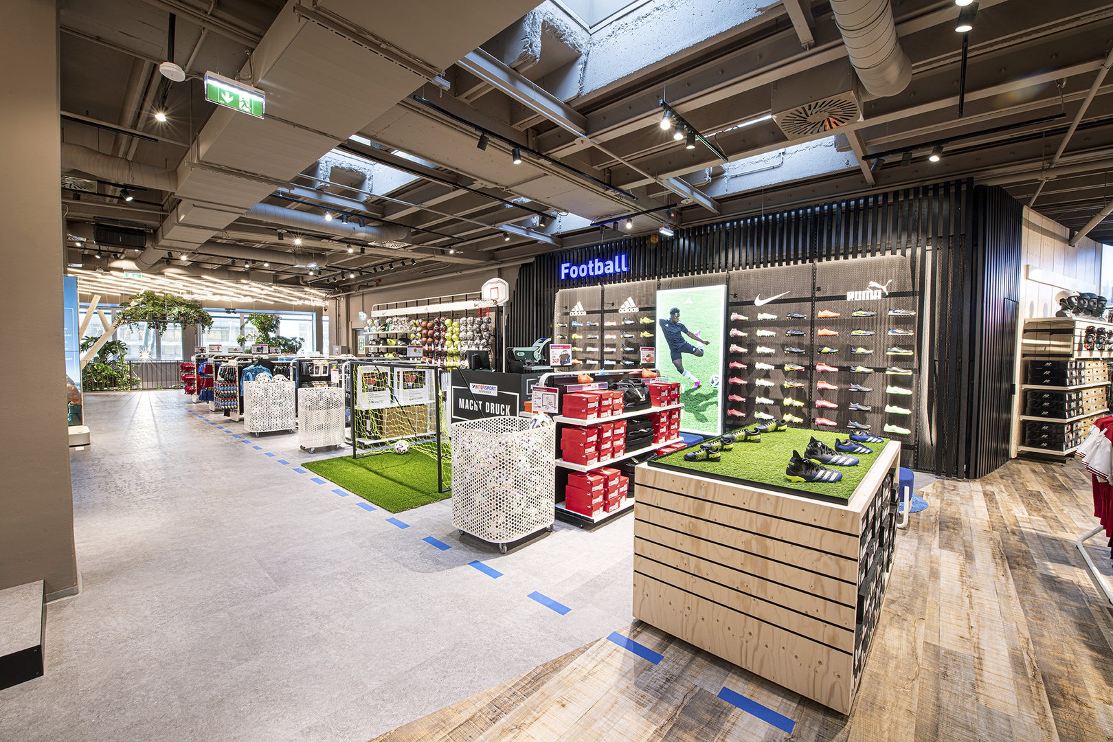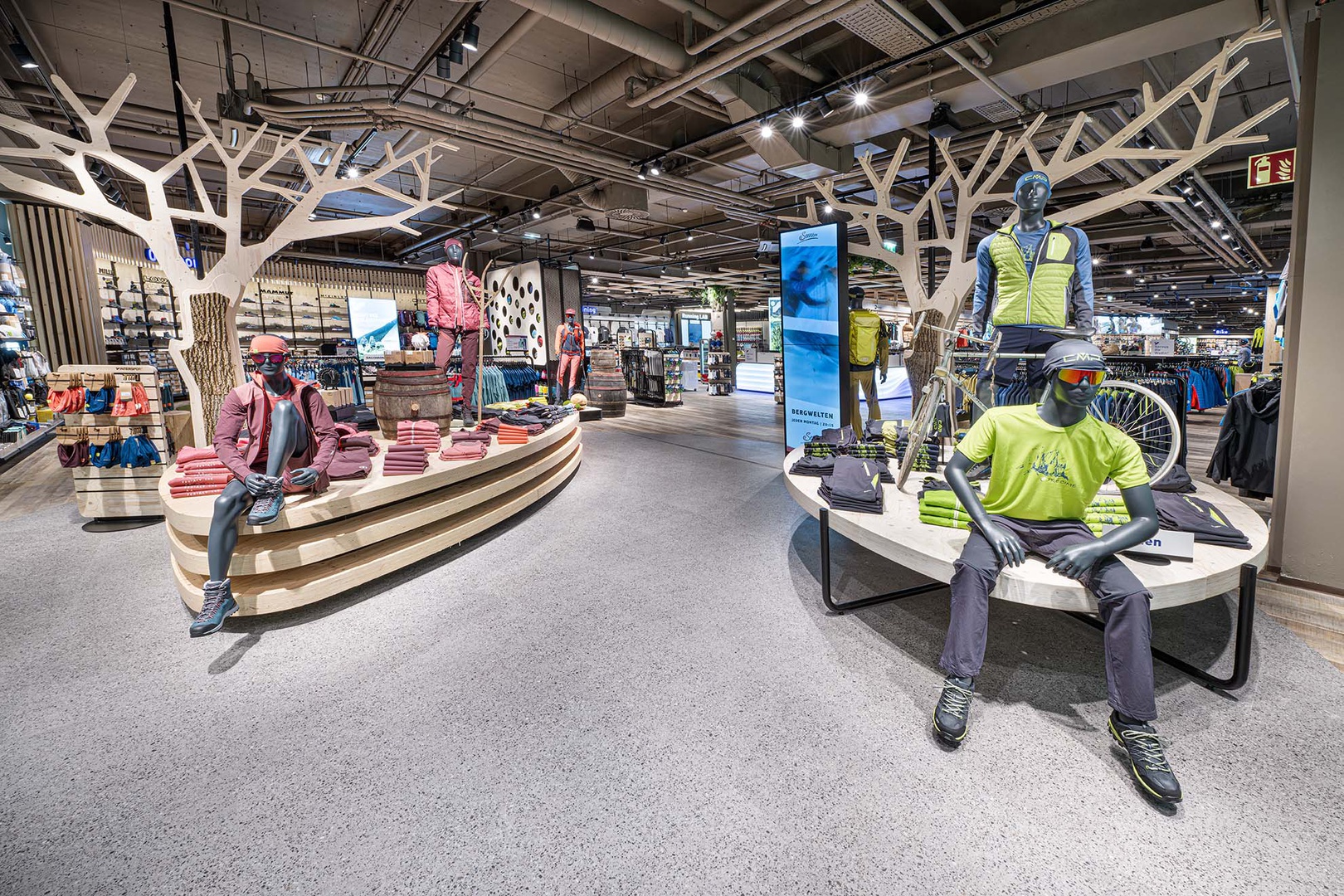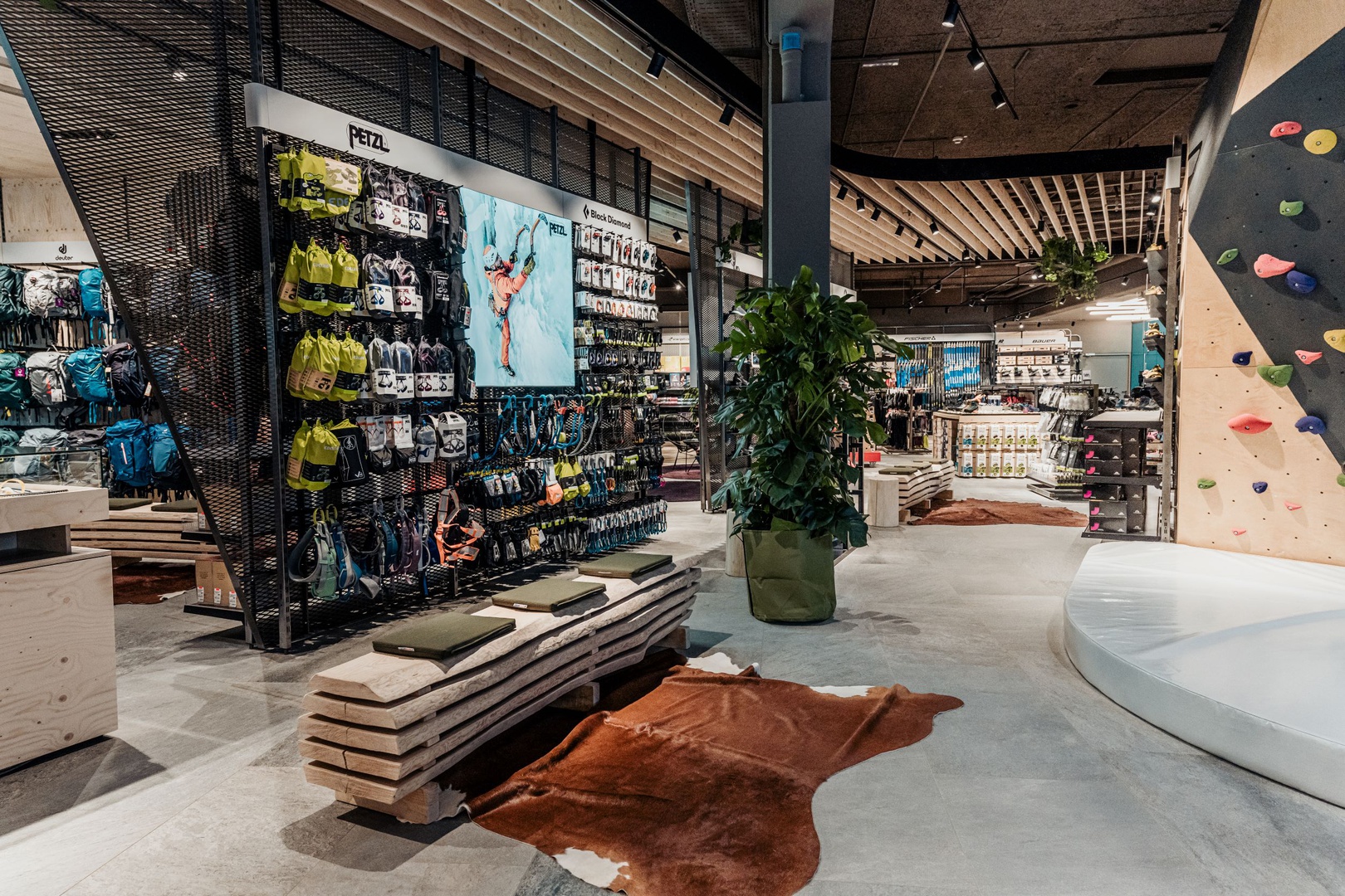 Frische Retailarchitektur mit dem Fokus auf RUNNING, TRAINING, SPORTSSTYLE und natürlich auf OUTDOOR sowie die Saisonen mit SKI & BIKE. Die WERKSTATT vor Ort, RUNNING ANALYSE und BERGSCHUHTESTER gehören heute selbstverständlich zum KUNDENSERVICE dazu. Ein BOULDERBLOCK komplettiert das RUNDUMSERVICE samt coolem ERLEBNIS.