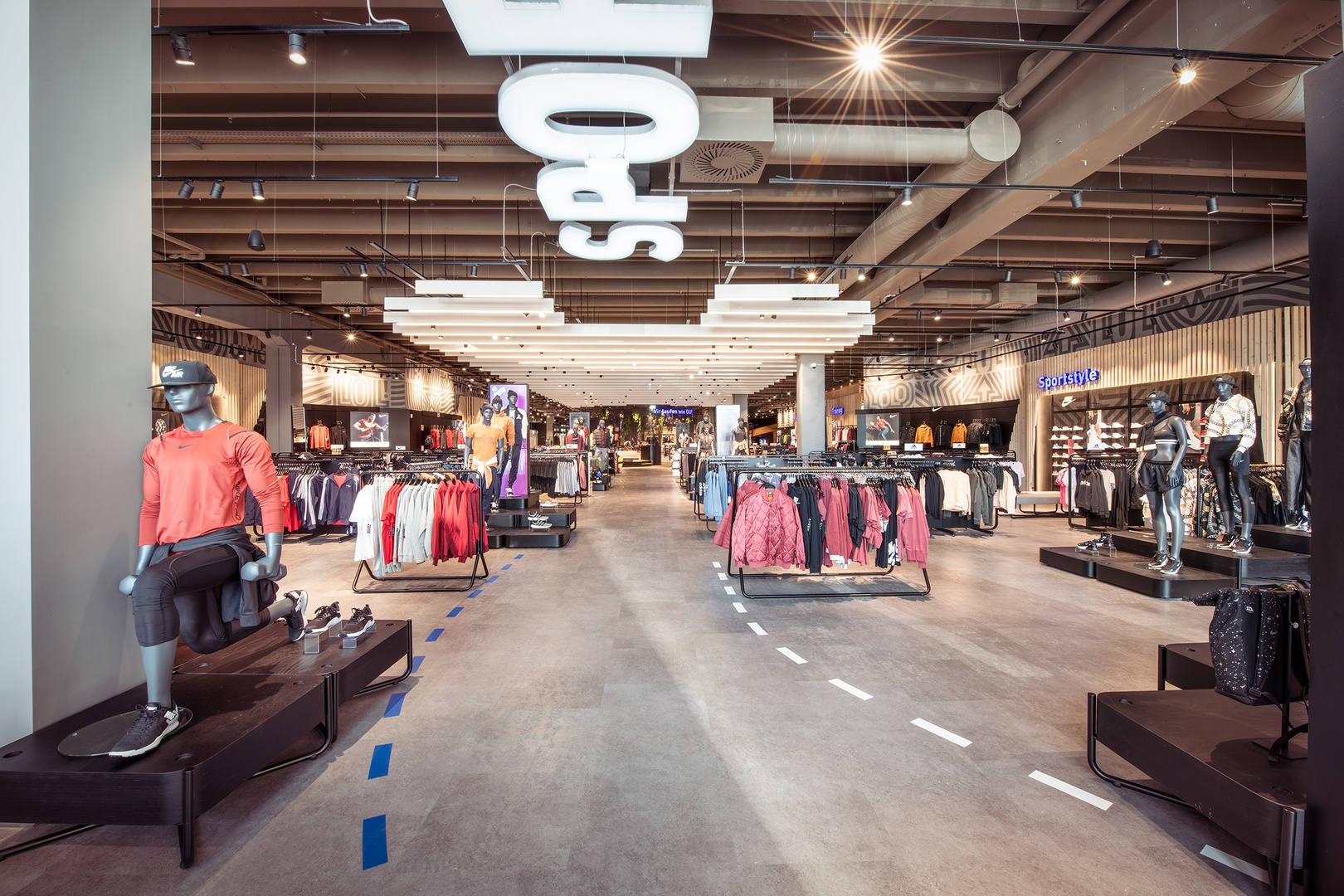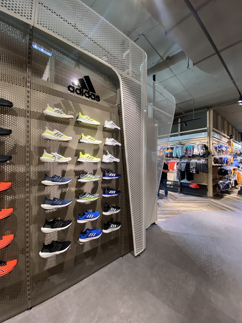 Eine technisch reduzierte Shop-Atmosphäre, die sich auf das Wesentliche konzentriert. Klare und übersichtliche Sortimentsschichtung mit akzentuierten Highlight-Flächen. Beratung und Markenkompetenz zelebriert das integrierte Fitting Lab inklusive Smart-Fit-Vermessungsstation.